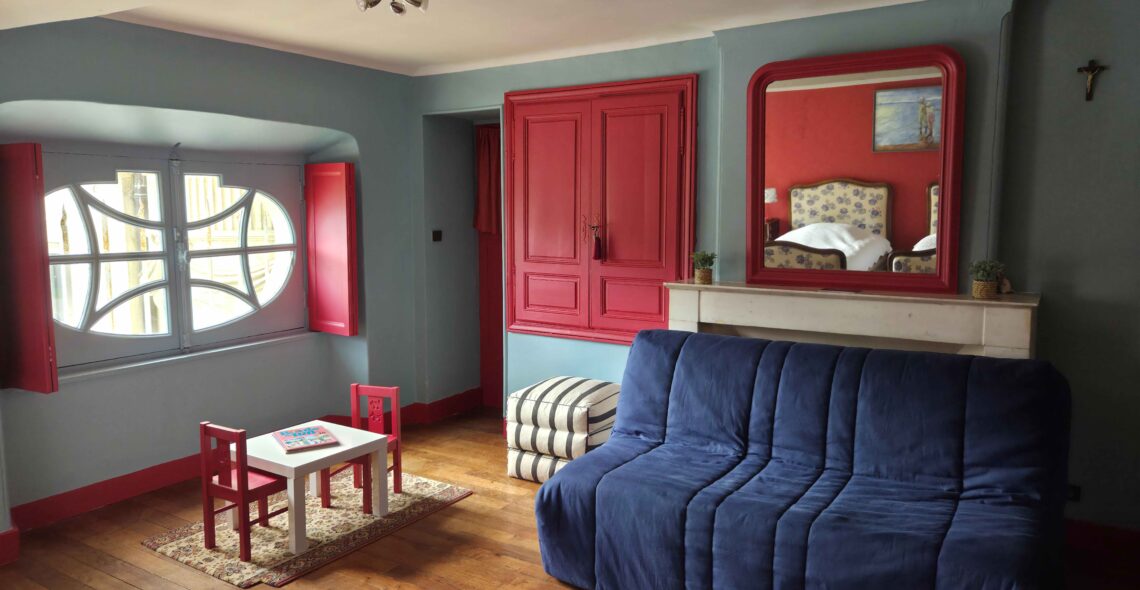 - Grand mama’s room: 1 queen size bed (160), private bathroom (washbasin, toilet and bathtub)
