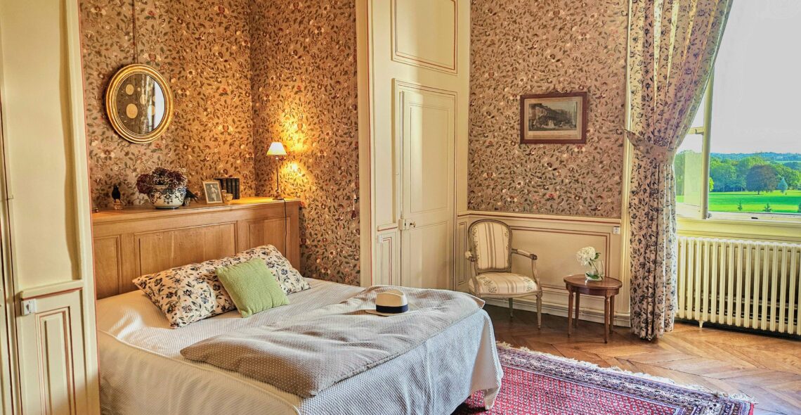 Cette chambre communique avec la chambre Empire (chambre single avec sa propre salle de bain privative avec baignoire et toilettes) et forme une suite pour 3 personnes.