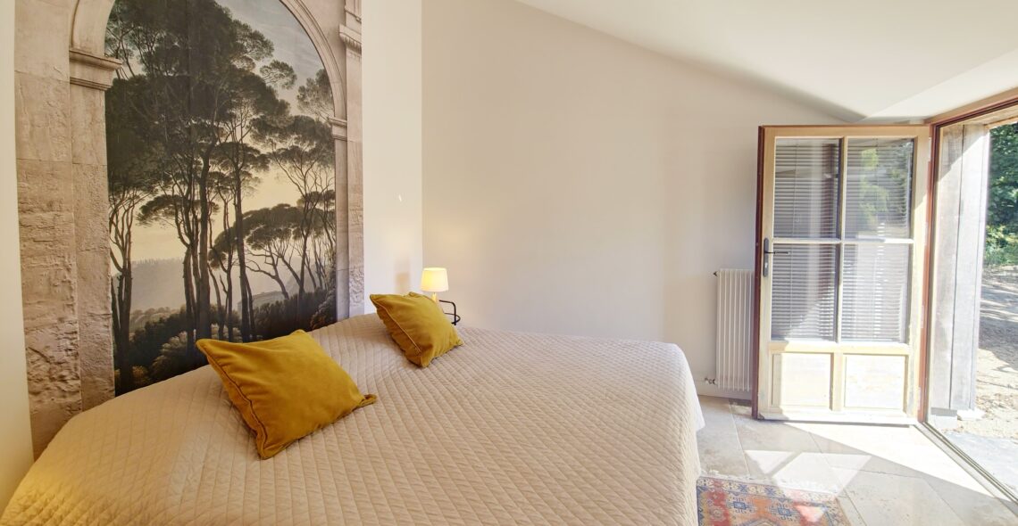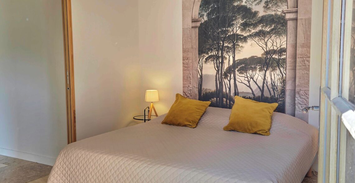 - 1 bedroom (2 single beds or 1 very large double bed, to be specified when booking)