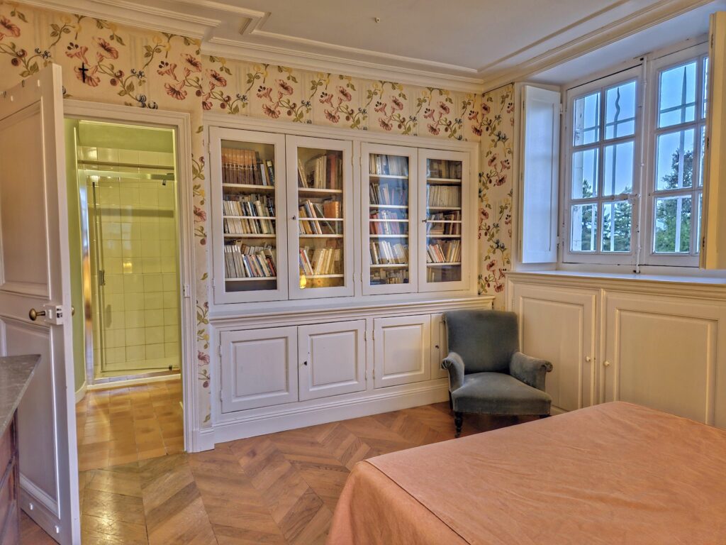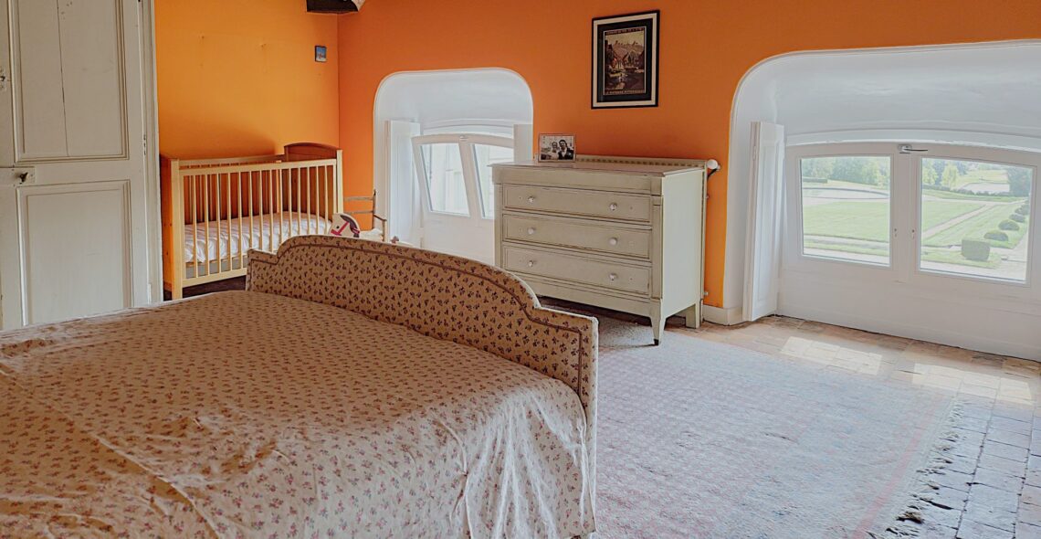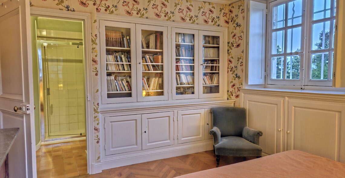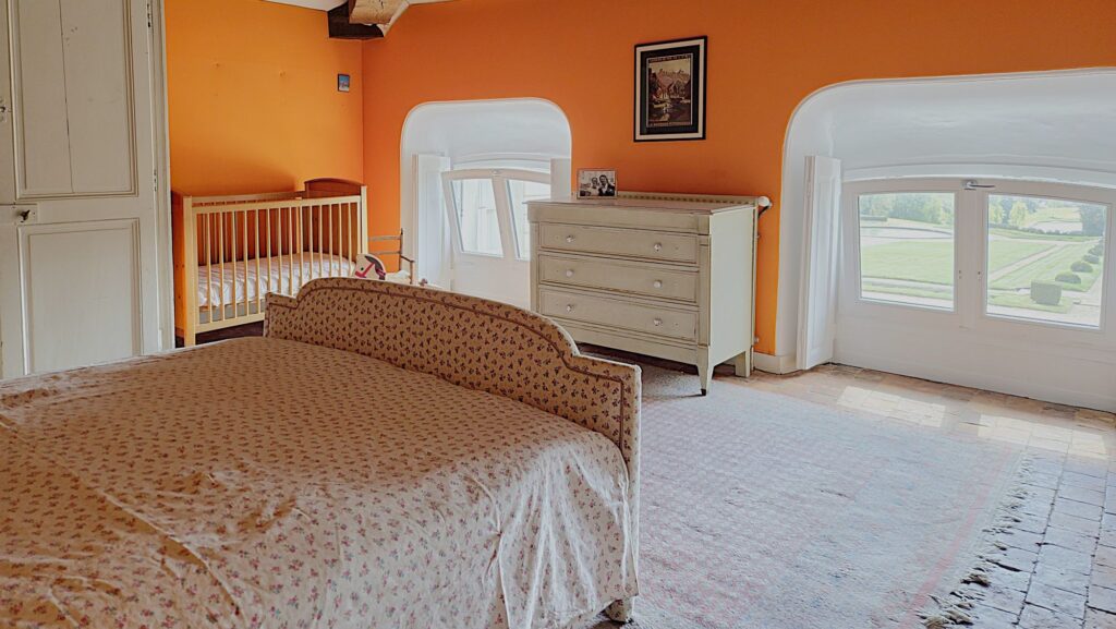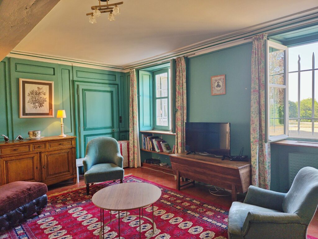 Ses fenêtres ouvrent sur le jardin à la française et le parc à l’anglaise entourant le château.